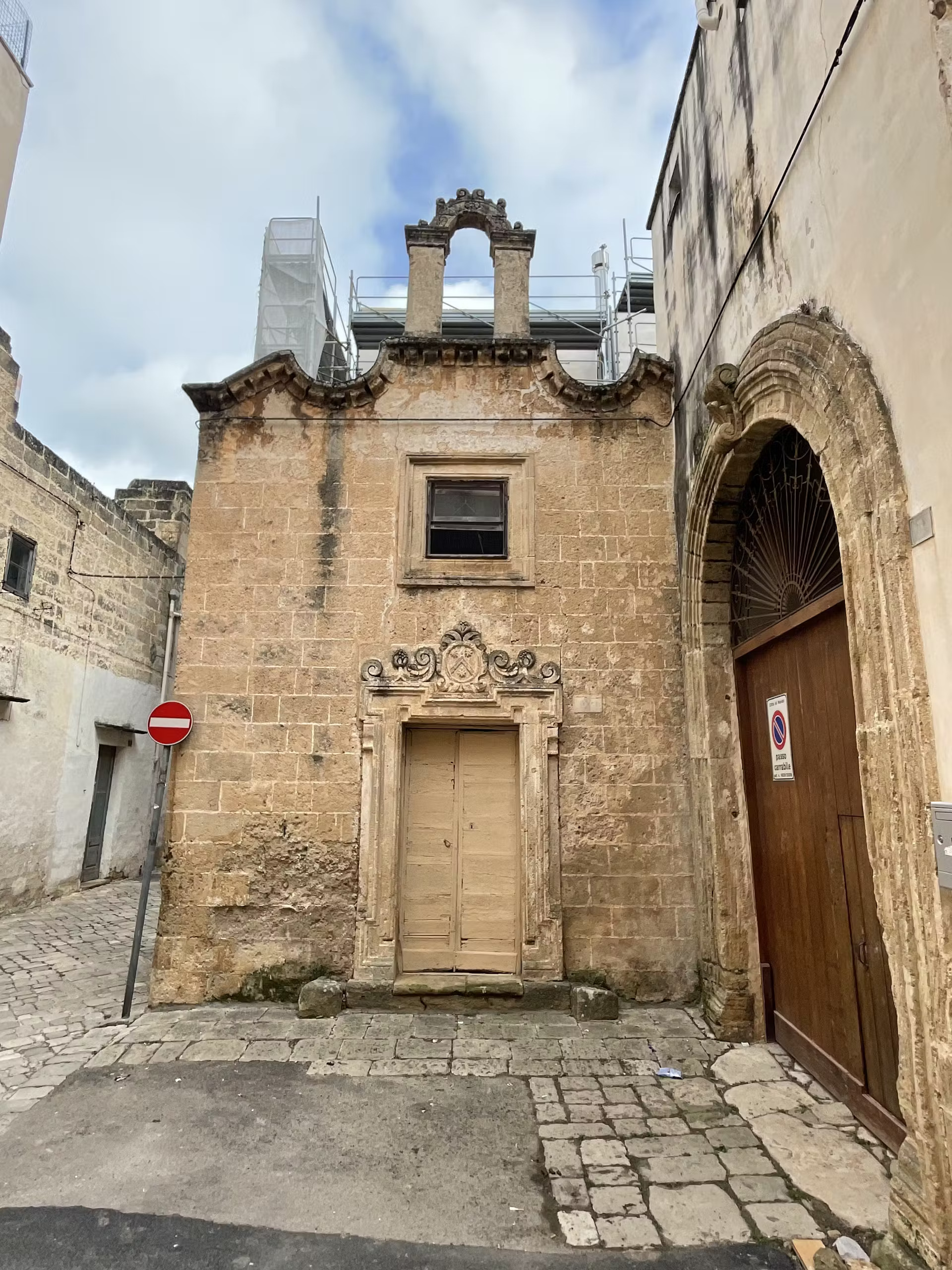 La cappella di San Lorenzo e il cortile De’ Pandi-Zuccaro si trovano a ridosso della chiesa di San Giuseppe e fanno parte di un palazzo tra i più antichi della città (sicuramente esistente fin dal XV sec.), appartenente alla nobile famiglia napoletana De’ Pandi, che intorno al XIII sec. si trasferì da Scala (Salerno) prima a Brindisi e poi a Nardò. Con il matrimonio in seconde nozze della nobile Francesca Giulio, vedova De’ Pandi, la proprietà passò a Luigi Zuccaro e agli eredi. Ancora oggi il palazzo e la chiesa sono di proprietà della famiglia Zuccaro. Nel 1942 la famiglia ospitò a pranzo il figlio dell’allora Re d’Italia, il principe Umberto II di Savoia, che si era fermato a Nardò durante una visita nel Salento. Dall’atrio del cortile d’ingresso si accede (dove un tempo c’era la selleria) ad un piccolo museo storico che gli attuali proprietari hanno allestito per custodire gli antichi finimenti dei cavalli e delle carrozze di proprietà della famiglia De’ Pandi. Gli ambienti interni, lussuosamente decorati con carte da parati e pitture parietali ottocentesche e un raffinato mobilio, conservano intatti i segni del luminoso passato. La cappella di San Lorenzo, ad aula unica, conserva l’altare originale con il quadro del Santo. Sulla facciata spicca lo stemma della famiglia Carignano, che ne possedeva il patronato e che forse anticamente era proprietaria del palazzo, prima dell’avvento dei nobili De’ Pandi.
