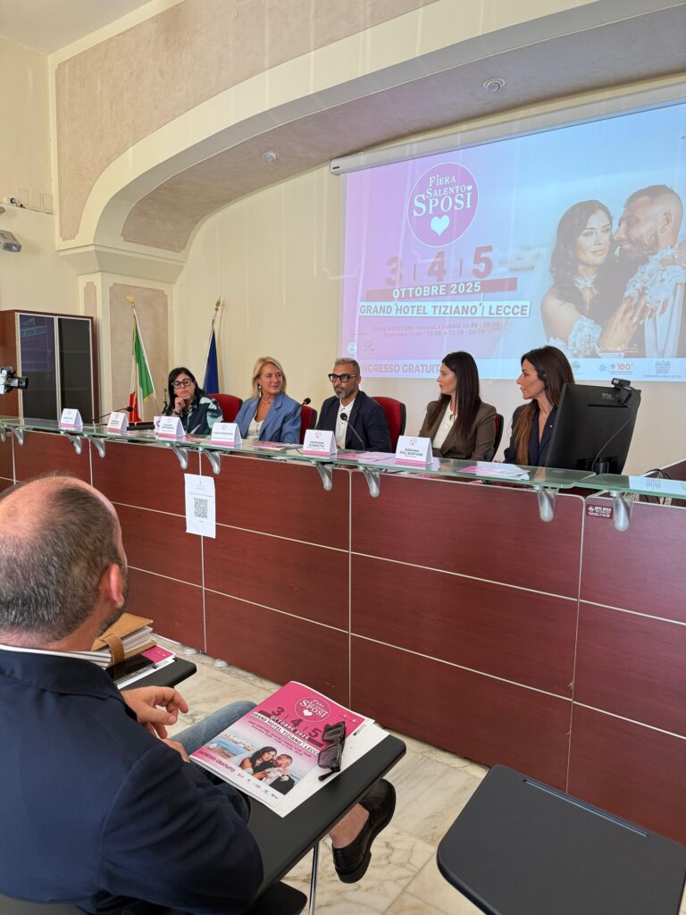 Presentata presso l’Open Space di Palazzo Carafa a Lecce “Salento Sposi 2025”, l’unico evento dedicato agli sposi in provincia di Lecce, capace di far incontrare gli operatori del settore “wedding” che vogliono coronare il loro sogno d’amore. All’incontro con radio, stampa e tv erano presenti Giovanni Conversano e Giada Pezzaioli di Platinum Eventi, agenzia che organizza da anni questa manifestazione che ha rilevo nazionale, Maria Gabriella Margiotta assessore allo sviluppo economico della città di Lecce, Laura Calò assessore agli affari generali di Lecce e Graziana Giannetta direttrice del Grand Hotel Tiziano e vicepresidente di FederAlberghi Lecce.