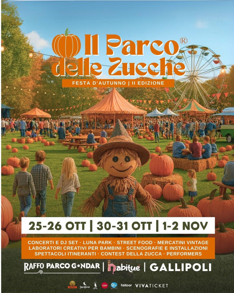 L’autunno a Gallipoli quest’anno profuma di magia, colori e divertimento grazie alla seconda edizione de “Il Parco delle Zucche – Festa D’Autunno” al Raffo Parco Gondar organizzata da Habituè e Parco Gondar. Le date da segnare in agenda sono 25 e 26 ottobre, 30 e 31 ottobre e 1 e 2 novembre: la cittadella eventi più grande del sud Italia si trasformerà in un vero e proprio villaggio incantato, dove grandi e piccoli potranno vivere esperienze uniche tra spettacoli, giochi, installazioni artistiche, musica e buon cibo.