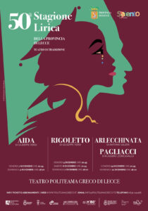 L’attesissima Aida di Giuseppe Verdi, che torna dopo ben 18 anni a Lecce, aprirà la 50^ Stagione lirica della Provincia di Lecce, in programma dal 7 al 30 dicembre, con tre opere in abbonamento (Teatro Politeama Greco) e un quarto titolo fuori  abbonamento (la rara esecuzione di Maria de Buenos Aires al Teatro Apollo).