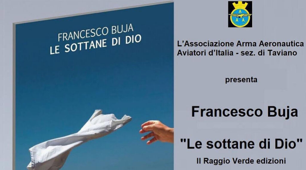 Tutti invitati dal Presidente Antonio Carlino pilota senza paura e sempre sulla cresta dell’onda dell’avanguardia culturale. Per gli appassionati di Aeronautica ed aerei , di storia militare e di musei, sarà l’occasione per ammirare la sede curata come un gioiellino con tutte le uniformi storiche, le divise, i gradi, i nastrini e la strumentazione raffinata usata durante le ultime guerre mondiali come i barometri e i misuratori dell’aria. Un tuffo nel passato dunque quello che si compirà durante la presentazione del romanzo e in cui il protagonista Franco spiccherà il volo verso il futuro, si spera , dove la Fede e l’afflato mistico verso Dio troveranno la finalmente la strada per l’espressione di una ricerca di sé e della propria anima. Francesco Buja con sguardo quasi ironico e con humour molto inglese , presenta nella sua scrittura i limiti, le debolezze, i vizi e le virtù umane facendo sognare proprio tutti , con questo romanzo che si legge tutto d’un fiato in maniera appassionata e travolgente.
