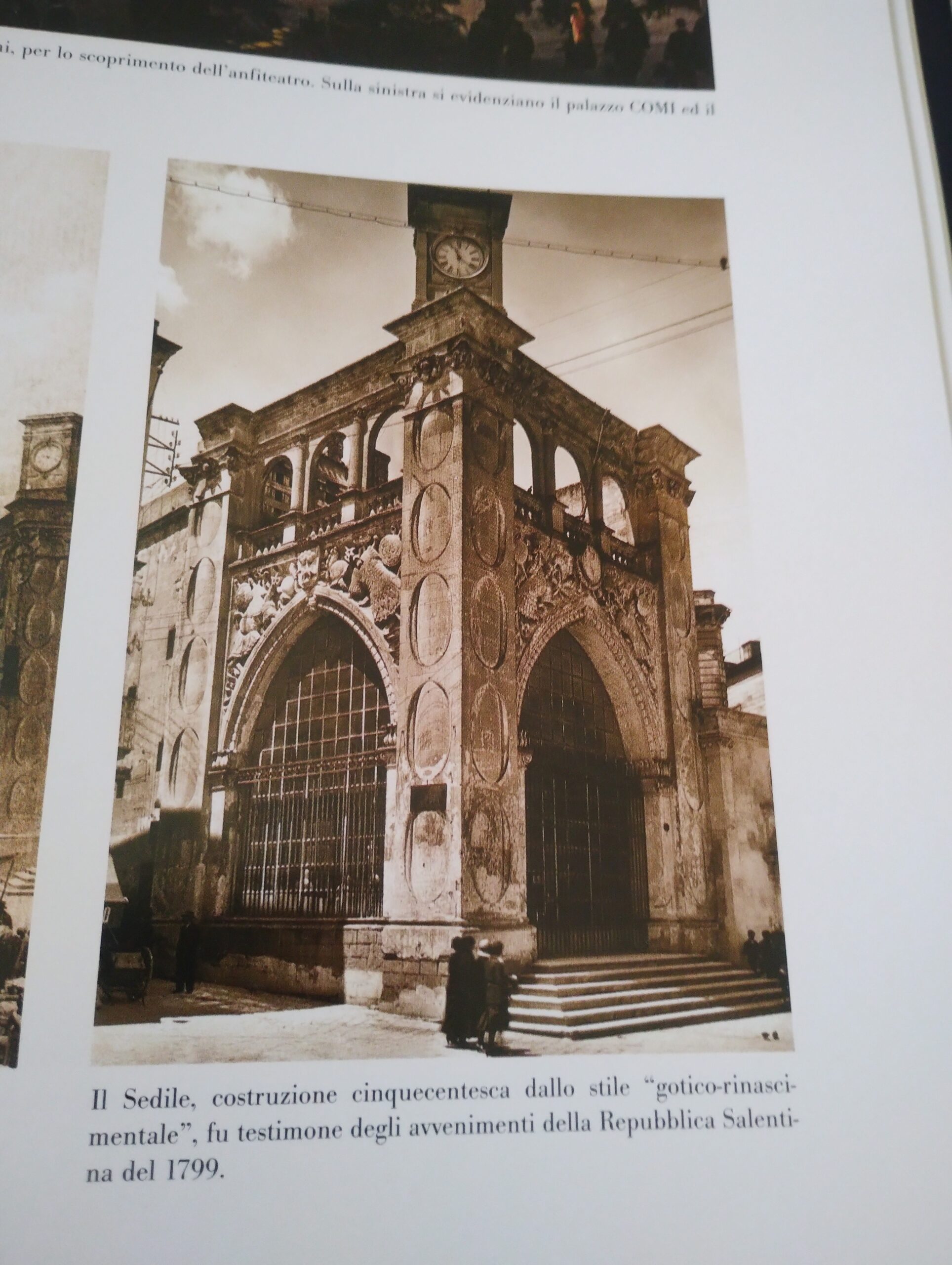 Prendo in prestito il calzante titolo di un articolo di E. Alvino che, dopo averlo pubblicato (1937), lo ripropose sulla Voce del Sud (di cui era direttore) il 28 giugno 1997 per rimarcare la mancanza dell’orologio posto sul cinquecentesco Sedile, nella centralissima piazza sant’Oronzo. La foto proposta rinfocolava il ricordo e la nostalgia circa la funzione del meccanismo che, al rintocco delle ore, partecipava alla vita cittadina.