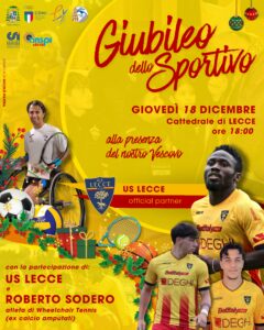 Lecce, 15/12/2025 – Si terrà giovedì 18 dicembre alle ore 18.00, presso la Cattedrale di Lecce, il “Giubileo dello Sportivo”, un significativo momento di incontro, riflessione e testimonianza dedicato al mondo dello sport, ai suoi valori educativi e alla sua profonda funzione sociale.