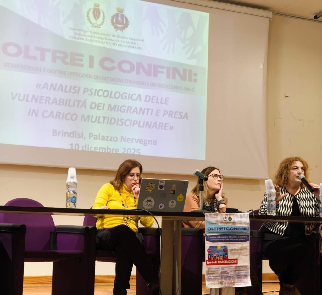 “Oltre i Confini: comprendere e gestire i percorsi dei cittadini stranieri e dei richiedenti asilo” a Brindisi, il messaggio di speranza affinché si evitino pregiudizio e patologizzazione secondaria dai servizi. “Sold-out” nella sala Gino Strada di Palazzo Nervegna per la formazione culturale offerta dal Consorzio Sociale BR 1 agli operatori del sociale e del sanitario.