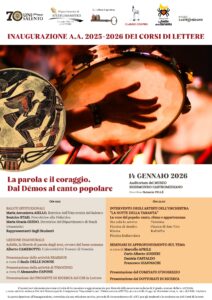 Un’inaugurazione che si propone non solo come apertura dell’anno accademico, ma come vero e proprio atto culturale, in cui la parola, antica e popolare, torna a essere gesto di coraggio, dialogo e comunità.