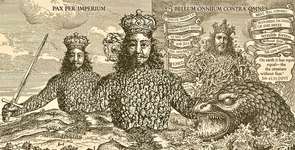 L’immagine potente e inquietante che accompagna l’opera, raffigurante il Leviatano, è la sintesi visiva della dottrina di Hobbes.