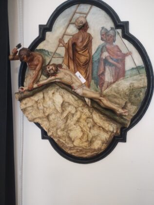 Per lunghissimi decenni, l’azione lenta, seppure costante, del fumo dei ceri accesi nella chiesetta dell’ex Collegio Argento (attuale sede del Polo Biblio-Museale situato nel Museo “Sigismondo Castromediano” di Lecce), ha annerito e mal ridotto le 14 stazioni della Via Crucis, eseguite in cartapesta ad altorilievo agli inizi del ‘900, da Raffaele Caretta (1871-1950), ritenuto tra i maggiori rappresentanti del citato artigianato-artistico leccese. Le sue opere ricevettero prestigiosi riconoscimenti in Italia ed all’estero. Si trovano disseminate a Lecce, nel Salento e in Puglia; per chi volesse conoscerle, sono riportate nei numerosi testi riguardanti la cartapesta leccese.