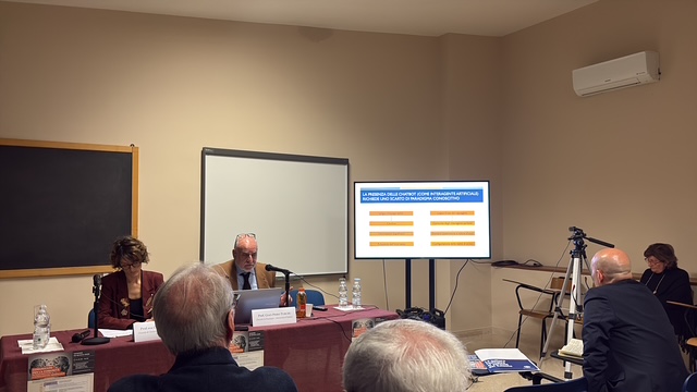 Cambiano le coordinate dell’equinozio della stagione e allo stesso tempo cambiano le coordinate della comunicazione. Relazioni e partecipazioni accese dal vivo e da collegamento di luminari e studiosi di tutte le branche dello scibile umano (teologia, psicologia, filosofia, biologia, giurisprudenza, neuroscienze) tra giornalisti freelance e docenti di epistemologia e della comunicazione, si sono alternate e succedute in modo armonioso ed accattivante. Infatti, argomenti su cosa sia l’Intelligenza Artificiale e come possiamo utilizzarla hanno svegliato interesse ed attenzione non solo agli studenti di scienze religiose interni all’Istituto presenti in maggioranza, ma anche di tutti gli altri invitati esterni professionisti e no. Già dai saluti istituzionali si è notato un incipit di riflessioni partecipate in una visione olistica su temi all’ordine del giorno.