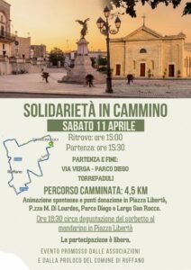 RUFFANO (LE) – Un’intera comunità che si mette in cammino per promuovere valori di solidarietà, partecipazione e benessere, dettati da una reale condizione di necessità. È in programma per sabato 11 aprile 2026 l’iniziativa “Solidarietà in cammino”, che coinvolgerà i territori di Ruffano e Torrepaduli.