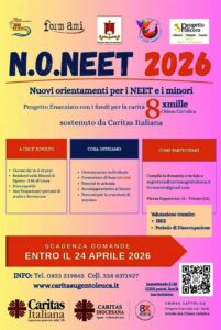 La Caritas Diocesana di Ugento – Santa Maria di Leuca comunica l’avvio della terza edizione del progetto “N.O.NEET – NUOVI ORIENTAMENTI PER I NEET E I MINORI”, nell’ambito del suo costante  impegno nel contrasto alla disoccupazione giovanile. Un’iniziativa, gestita dall’Associazione Form.Ami APS-ETS in sinergia con la Cooperativa I.P.A.D. Mediterranean e la Fondazione Mons. Vito De Grisantis, che punta a offrire un ponte concreto tra formazione e mondo del lavoro.